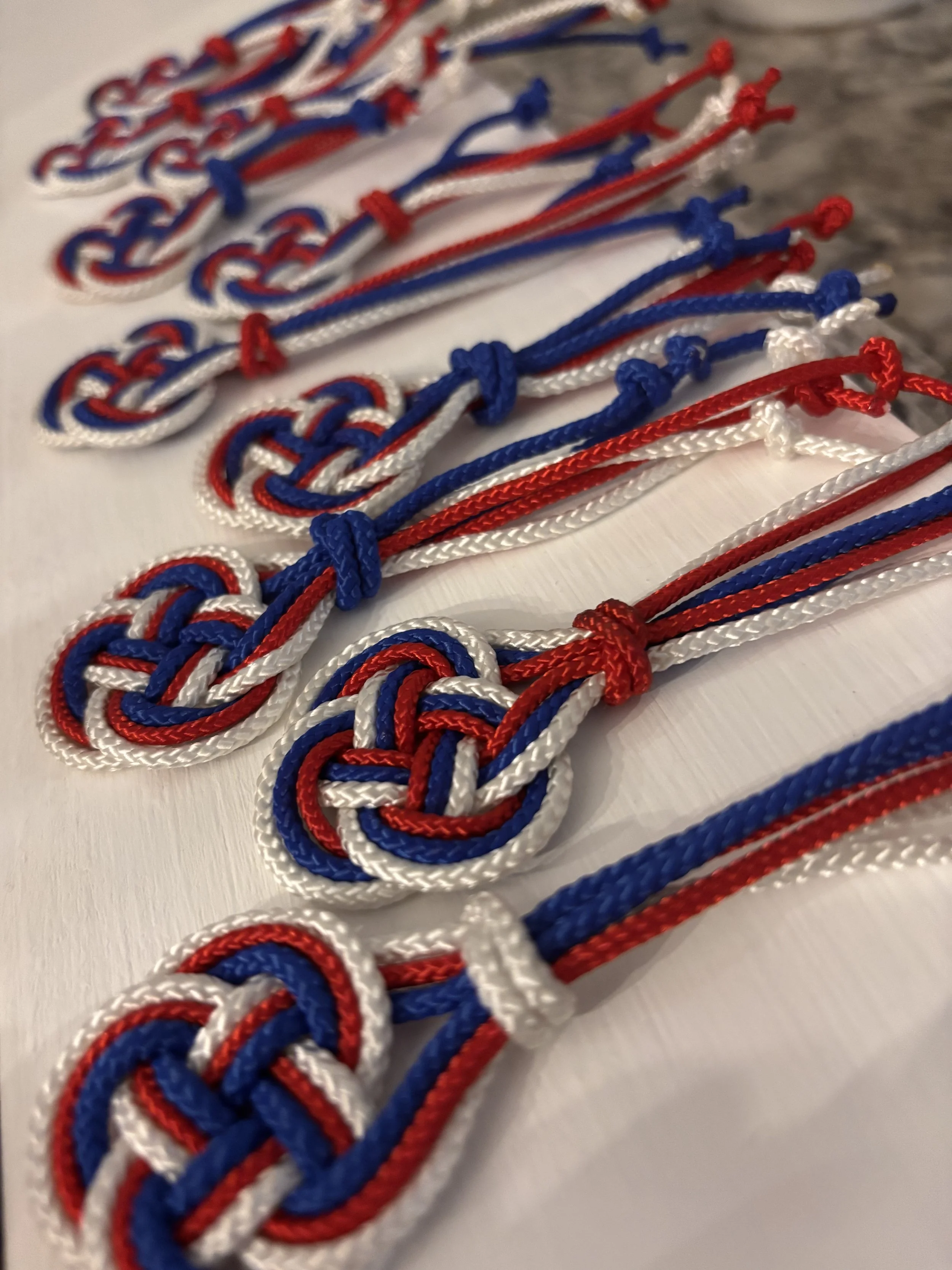 The red and blue interwoven design echoes maedeup (매듭), a traditional Korean decorative knot used in art, clothing, and ceremonial objects. Set within a Taeguek-inspired “O”, the logo signals belonging and pride for Korean-American players and supporters. It celebrates identity in a sport where representation matters, weaving together community, culture, and competition. Crafted using lacrosse sidewall strings, the maedeup knot bridges Korean tradition with the competitive spirit of lacrosse.